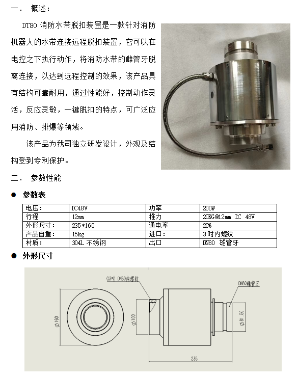 DT80消防水帶電脫扣裝置